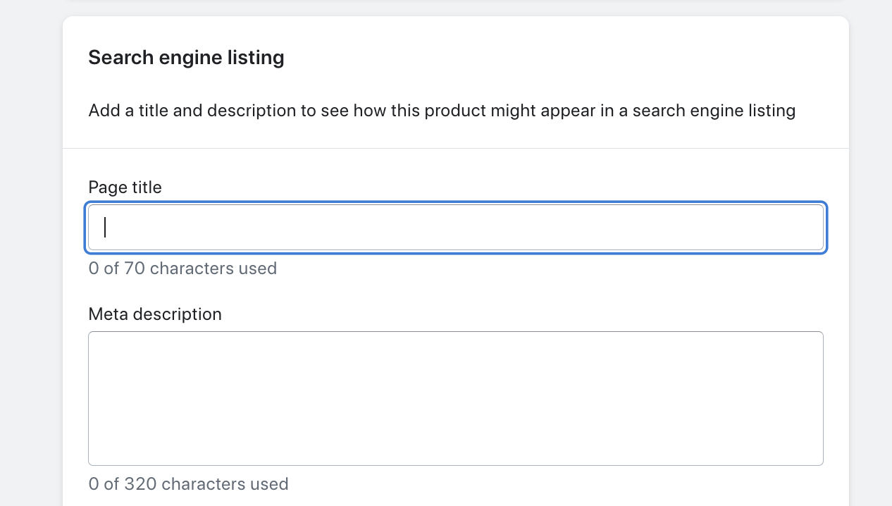 Scroll down to the bottom of the page to the “Search Engine Listing” section, click “Edit,” and add meta copy accordingly